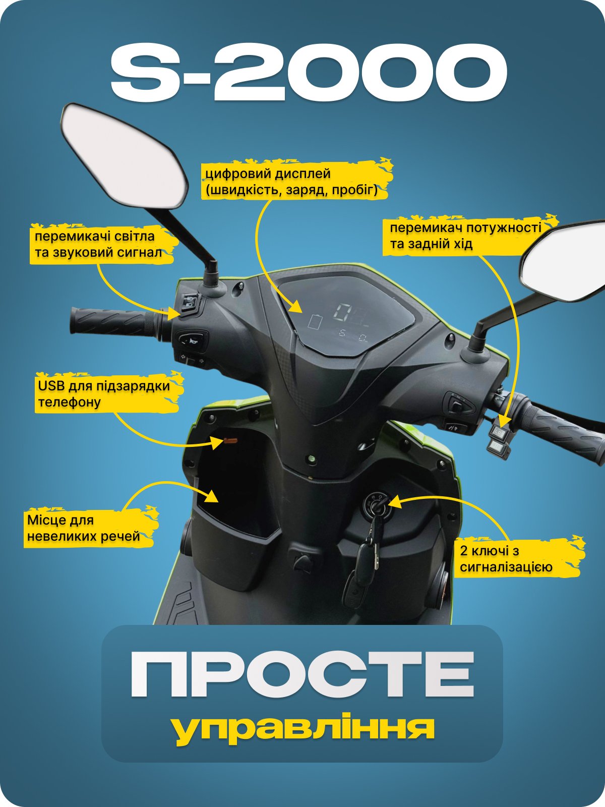 Електроcкутер DOZER S-2000 - це стильний і надійний транспорт для щоденних поїздок містом або заміськими дорогами. Оснащений потужним електродвигуном, він забезпечує максимальну швидкість 60 км/год і запас ходу до 60 км на одному заряді, що дозволяє зручно пересуватись без підзарядки протягом усього дня.